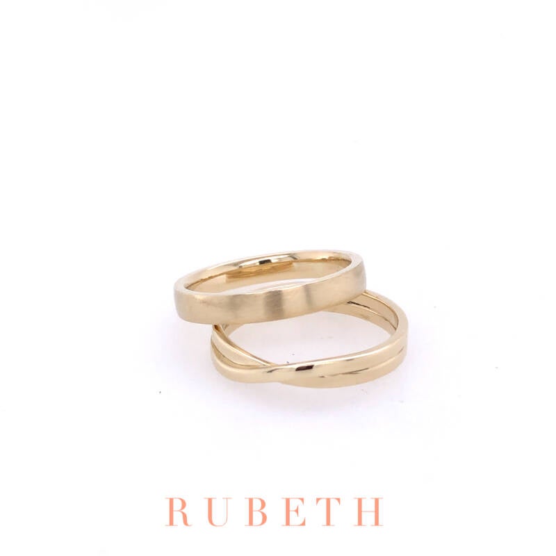 Voor hun huwelijk maakten we in opdracht trouwringen: een trouwring voor haar met een ringband die over een ringband heen is gebogen en voor hem een gematteerde ring. Van harte Marijke en Kasper!