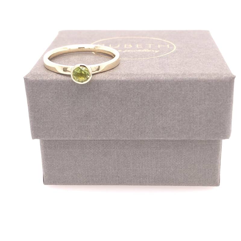 Van een gebroken kettinkje en een oorbel met peridoot maakten we een nieuw aanschuifringetje.