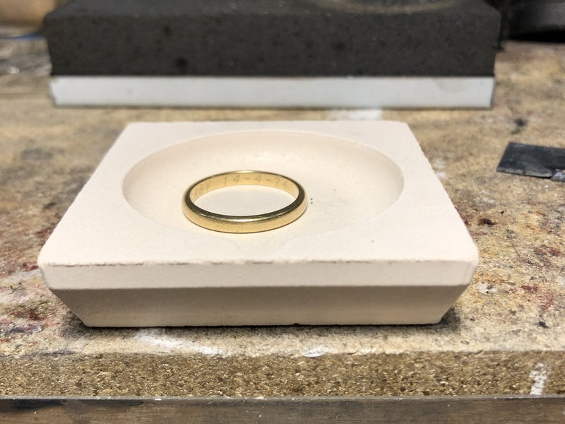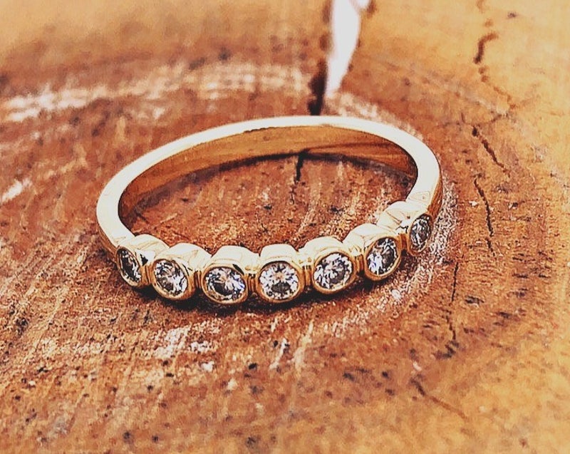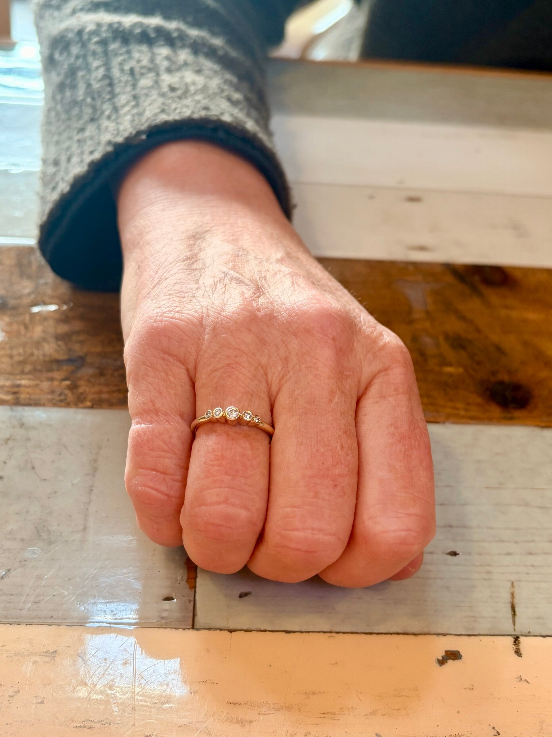 Een ring die niet meer werd gedragen en armbandje werden omgesmolten en gebruikt voor een nieuwe frisse ring. De 7 diamantjes zaten in de oude ring.